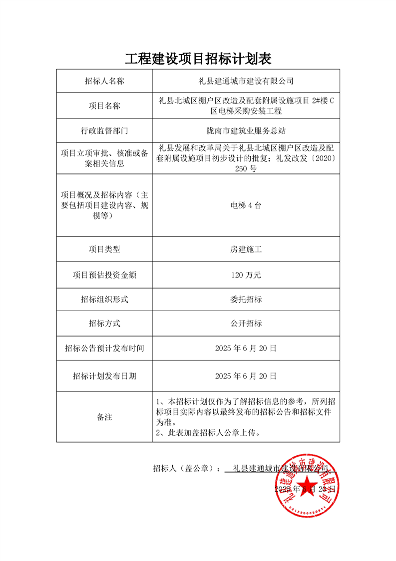 禮縣北城區(qū)棚戶(hù)區(qū)改造及配套附屬設(shè)施項(xiàng)目2#樓C區(qū)電梯采購(gòu)安裝工程
