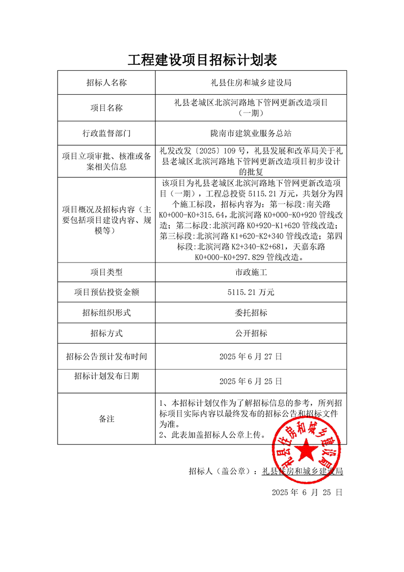 禮縣老城區(qū)北濱河路地下管網(wǎng)更新改造項(xiàng)目(一期)