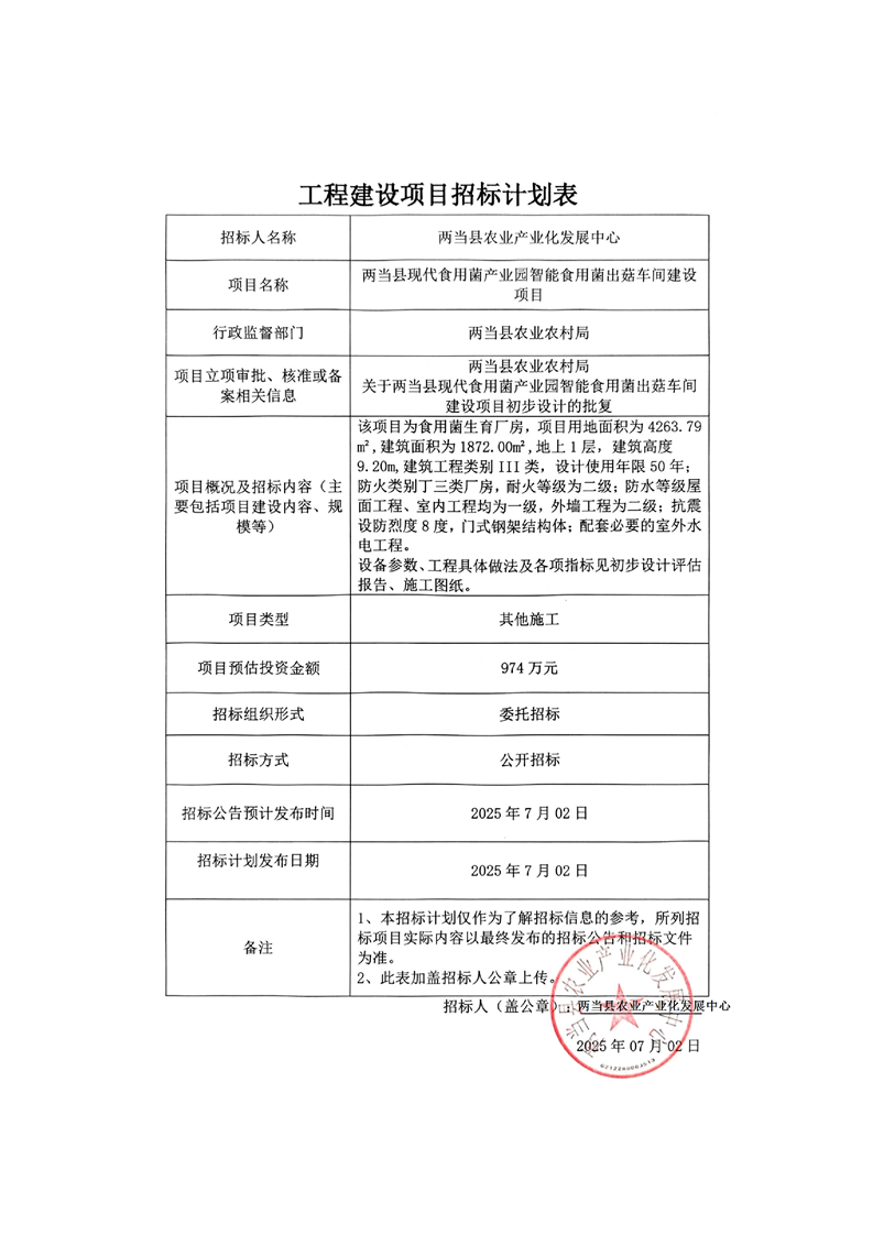 兩當(dāng)縣現(xiàn)代食用菌產(chǎn)業(yè)園智能食用菌出菇車(chē)間建設(shè)項(xiàng)目