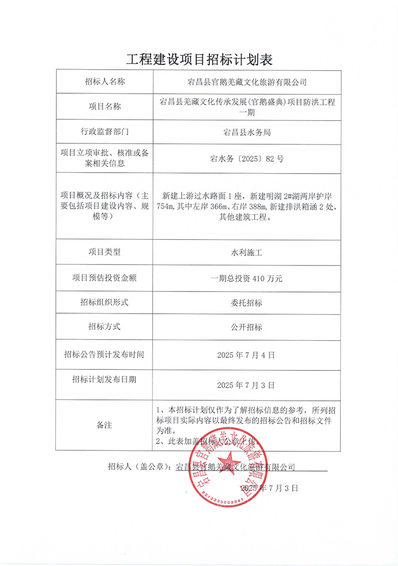 宕昌縣羌藏文化傳承發(fā)展(官鵝盛典)項目防洪工程一期
