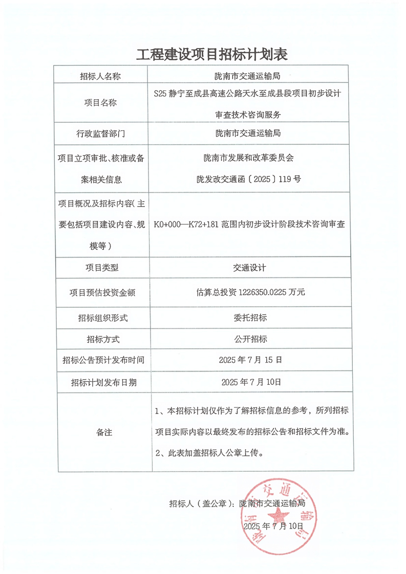 S25靜寧至成縣高速公路天水至成縣段項目初步設計審查技術(shù)咨詢服務