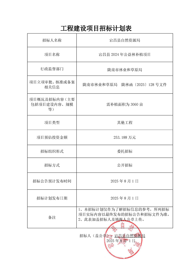 工程建設(shè)項目招標計劃表宕昌縣2024年公益林補植項目.pdf