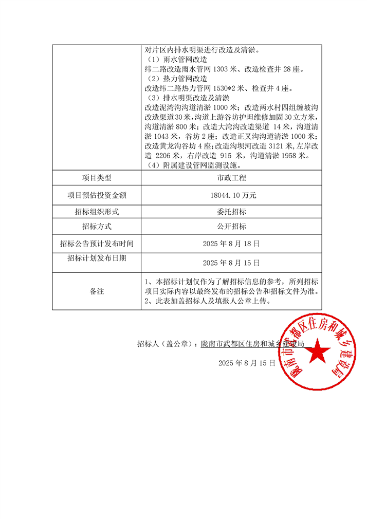 隴南市武都區(qū)兩水片區(qū)地下管網綜合改造項目