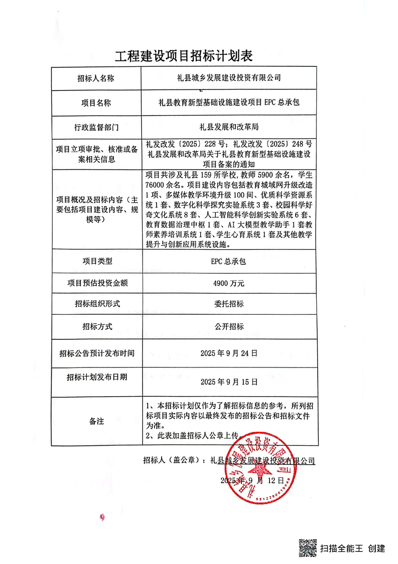 禮縣教育新型基礎(chǔ)設(shè)施建設(shè)項目EPC總承包