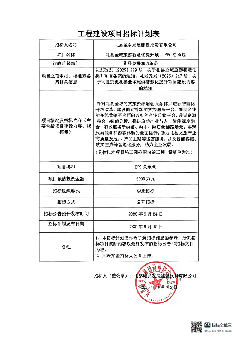 禮縣全域旅游智慧化提升項(xiàng)目EPC總承包