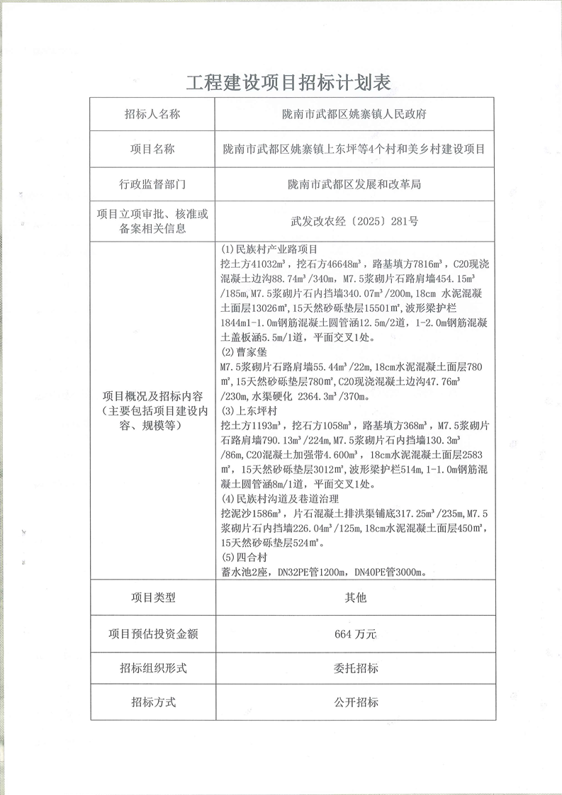 隴南市武都區(qū)姚寨鎮(zhèn)上東坪等4個(gè)村和美鄉(xiāng)村建設(shè)項(xiàng)目