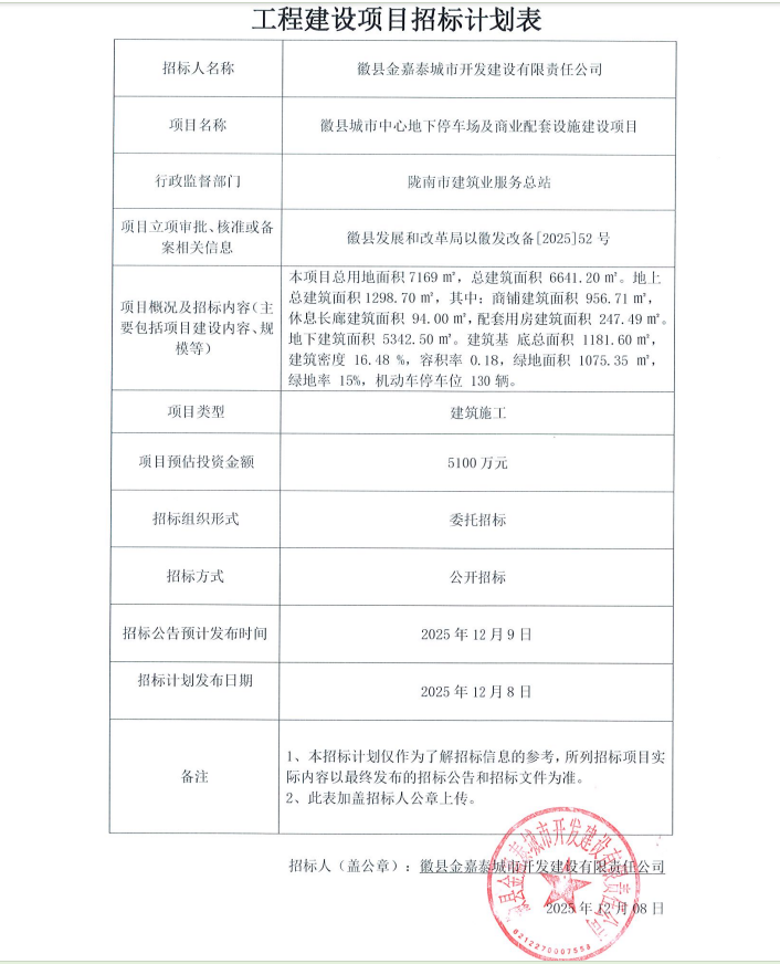 徽縣城市中心地下停車(chē)場(chǎng)及商業(yè)配套設(shè)施建設(shè)項(xiàng)目