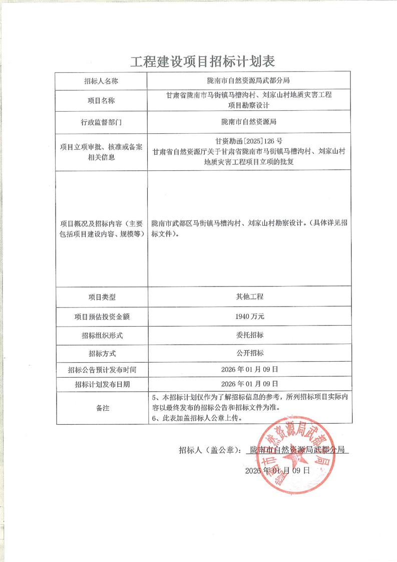 隴南市武都區(qū)馬街鎮(zhèn)馬槽溝村、劉家山村地質(zhì)災害治理工程勘察設(shè)計