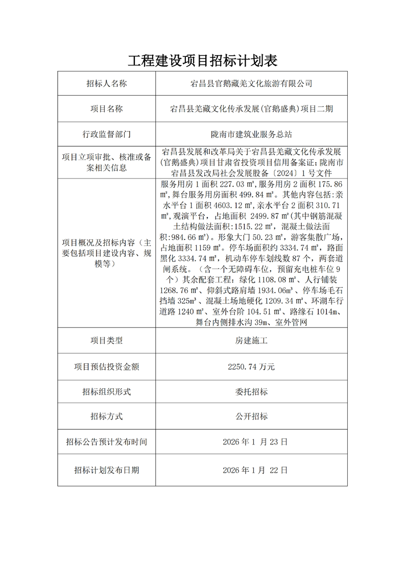 宕昌縣羌藏文化傳承發(fā)展(官鵝盛典)項目二期
