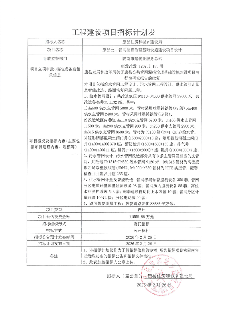 康縣公共管網漏損治理基礎設施建設項目設計