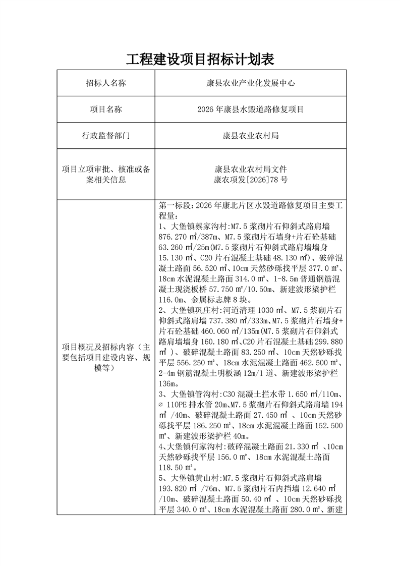 招標計劃表(2026年康縣水毀道路修復項目).pdf
