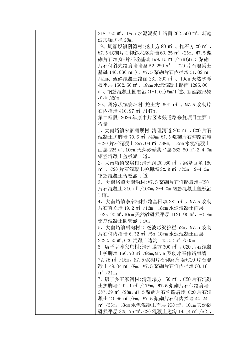 2026年康縣水毀道路修復項目