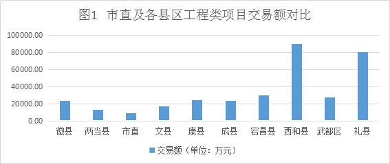 1.工程類項(xiàng)目:市直6項(xiàng),交易額8655.19萬(wàn)元;武都區(qū)29項(xiàng),交易額27254.23萬(wàn)元;成縣24項(xiàng),交易額23254.25 萬(wàn)元;徽縣26項(xiàng),交易額23476.37萬(wàn)元;西和縣70項(xiàng),交易額90305.24萬(wàn)元;禮縣41項(xiàng),交易額80922.67萬(wàn)元;康縣29項(xiàng),交易額24450.87萬(wàn)元;文縣17項(xiàng),交易額17048.62萬(wàn)元;宕昌縣34項(xiàng),交易額30189.76萬(wàn)元;兩當(dāng)縣7項(xiàng),交易額13081.40萬(wàn)元。