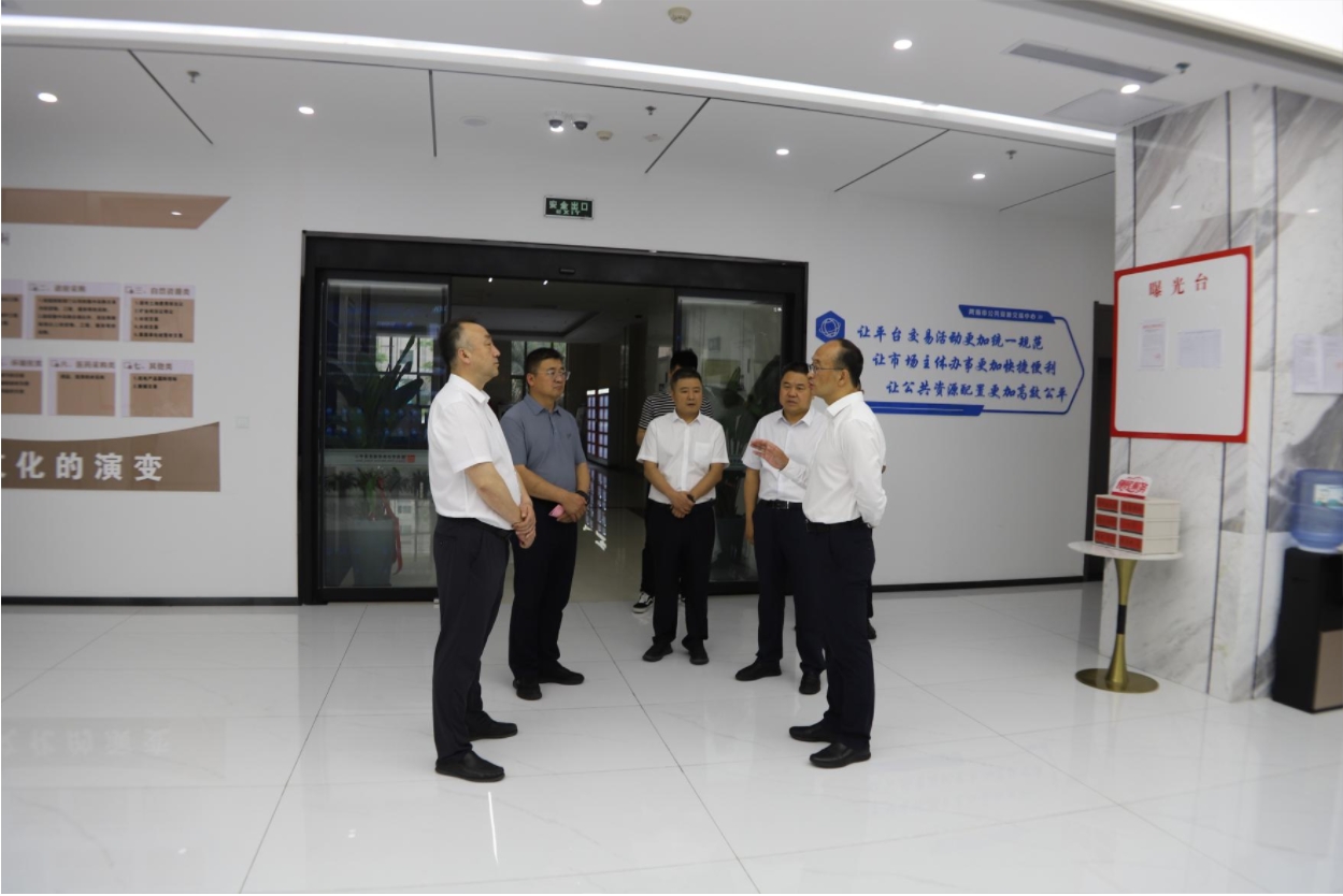 在調(diào)研過程中,李榮先后察看了交易服務(wù)大廳、網(wǎng)上開標(biāo)直播大廳、專家抽取室、封閉評(píng)標(biāo)區(qū)、多功能交易廳、黨建活動(dòng)中心、行業(yè)監(jiān)管區(qū)、電子檔案管理室等運(yùn)行情況,現(xiàn)場(chǎng)認(rèn)真聽取了有關(guān)情況的匯報(bào)。對(duì)交易中心在場(chǎng)所設(shè)施保障、推行全流程電子化交易、黨建與業(yè)務(wù)融合發(fā)展、營(yíng)造良好營(yíng)商環(huán)境等方面工作給予了充分肯定。