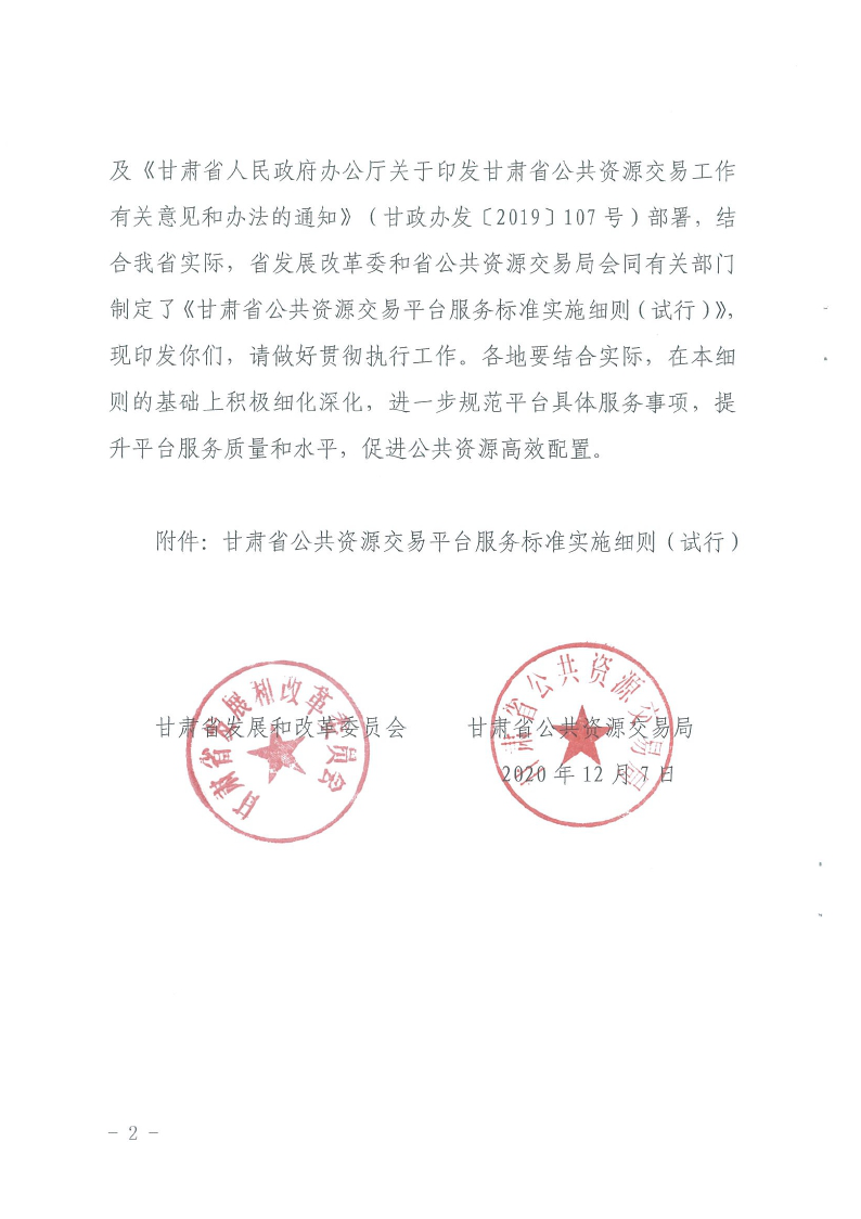 省發(fā)改委省公共資源交易局關(guān)于印發(fā)《甘肅省公共資源交易平臺服務(wù)標(biāo)準(zhǔn)實(shí)施細(xì)則(試行)》的通知